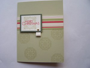 Bet you didn’t think I would get another card posted before we moved…. well, neither did I, but stamping and make cards is such a good way for me to unwind after a hard day of packing and organising that I just can’t help myself 🙂 So here is another Christmas Card using that yummy Dashing paper again 🙂 This time I have used the Simple Delights stamp sets from the Simply Sent Card Kit, and I am really pleased with the way it has turned out. I have also used the same paper to line the envelope for a really elegant look.