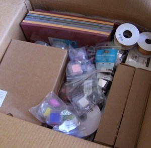 Wow, look at this box full of Stampin’ Up! goodies that arrived on my doorstep last week.  This box is full to overflowing with product which was donated by Stampin’ Up! for my fundraising night.  What an incredible, and very generous company.