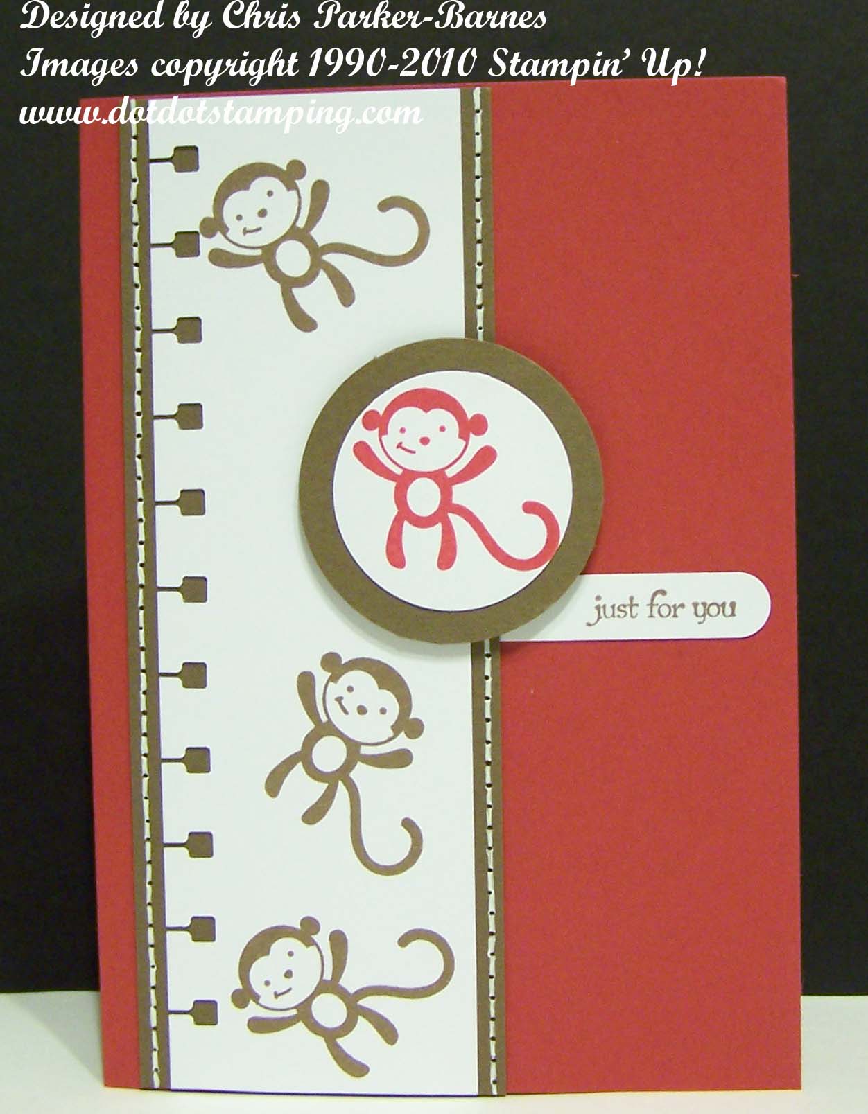 The next card uses those cheeky monkeys, and colours Soft Suede and Riding Hood Red.
