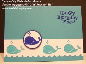 The first one uses the whale from Fox and Friends, stamped in Tempting Turquoise and Brilliant Blue.
