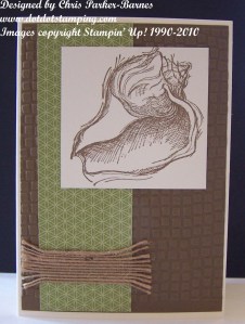 from one design. I have used a very simple layout today, and made two completely different cards, just to show you how you can do it too. The first card uses some lovely male colours, including one of my new favourites Soft Suede. I have run the layer of Soft Suede cardstock through the Big Shot using a non-Stampin’ Up! embossing folder, but I thought this one really suited the image I wanted to use for it. The image is from the Seaside stamp set and is also stamped using Soft Suede ink.