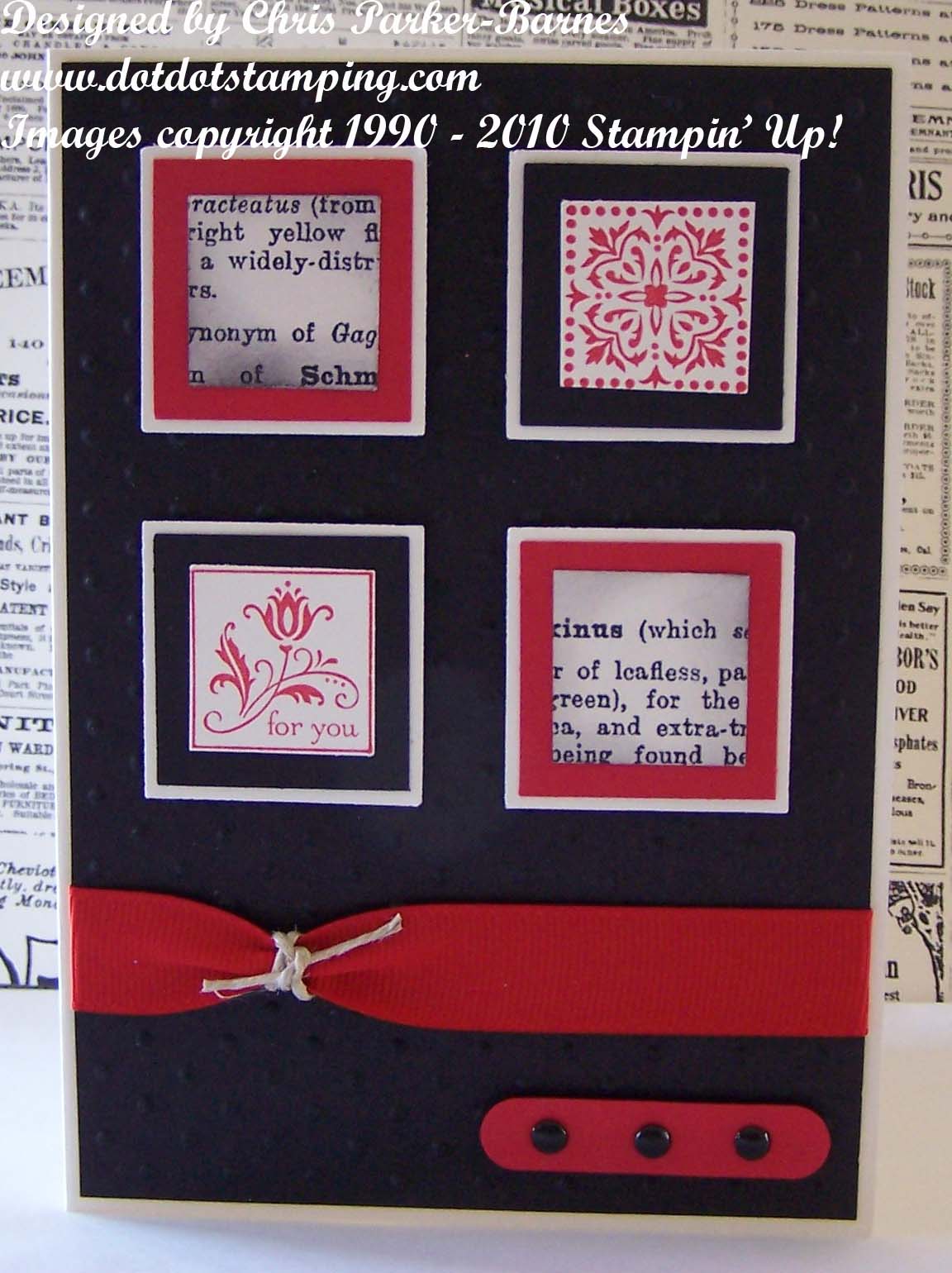 This is a really easy layout if you own a couple of square punches, but even if you don’t, you could try it using circles instead of squares. Anyway, have a go and see what you can create!