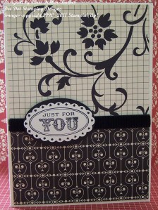 This week’s Just Add Ink Challenge is to make a project using only Black and White, with no other colours. I have kept this one simple, but have used Very Vanilla with Black – close enough! I had to use the gorgeous “Love Letter” Designer Series Paper for this card, it is one of my all time favourite DSPs. And I have used the Oval All stamp set for the greeting, along with some retired black ribbon. And that’s it!