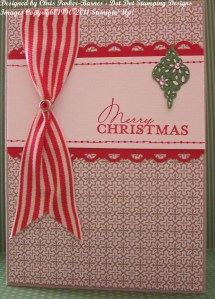 The stamp sets I have used are Tree Trimmings and Contempo Christmas, and the colour combination – nice and traditional, is Real Red, Garden Green and Sahara Sand.