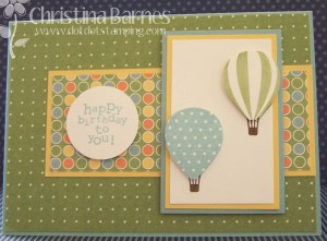 I am not entirely happy with this card, I think I should have done the second balloon in orange instead of green, just to brighten it up a little.