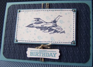 The first challenge was to make a card using the colours Night of Navy and Marina Mist. I used the Need for Speed stamp set for the main image, the splodges in the background are a stamp from the French Foliage stamp set, and the greeting is from the Sweet Cake set. The texture on the navy card stock is from the Houndstooth Embossing folder. I am loving this embossing for male cards!