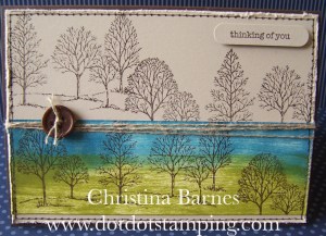 Anyway, I have used the Lovely as a Tree stamp set, and the coloured panel I have done with ink pad swiped directly onto the card stock then a little bit of sponging to add some shading.