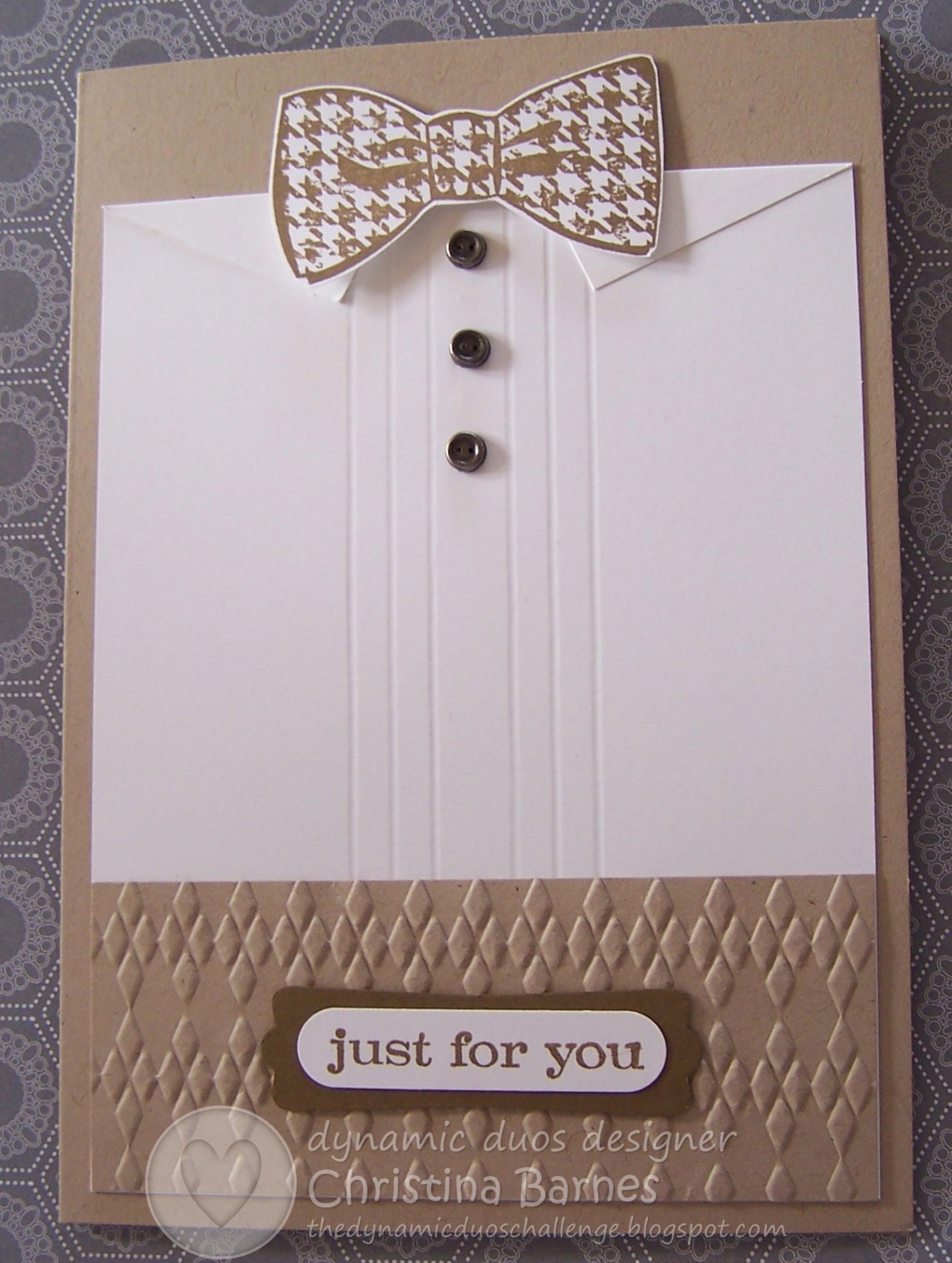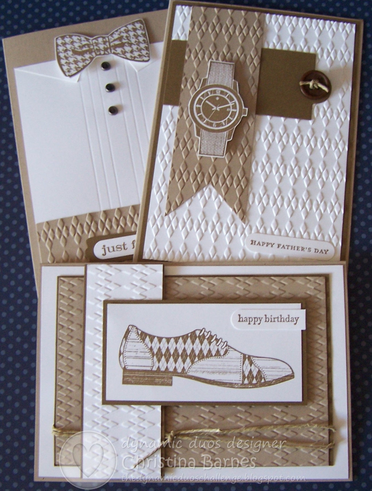 Awesome set of man cards Christina! I love the embossed lines you used to create the shirt and the way you showcased this set!
