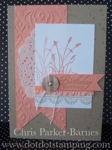 The colours are Crumb Cake, Crisp Cantaloupe (such a gorgeous colour!) and Whisper White, and I have used the gorgeous Wetlands stamp set again, loving this set at present 🙂