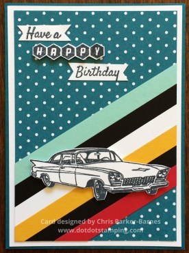 The car stamp and the sentiment were freebies from a magazine I bought recently.  Both the car and the “Happy” have been fussy cut and mounted on dimensional tape.