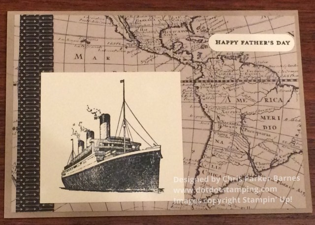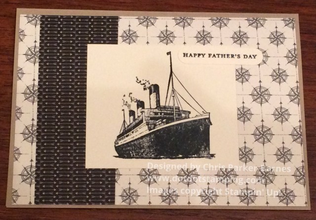 Two really fabulous cards Chris. I love those backing papers – especially the map one, and the boat stamp makes a great masculine card.