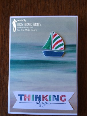 The cute sailing boat is part of the Swirly Bird stamp set. I have coloured the stamps of the different parts of the boat with markers, and then fussy cute them. The sentiment is an old one from a retired stamp set, again I have inked up the different letters with different coloured markers.