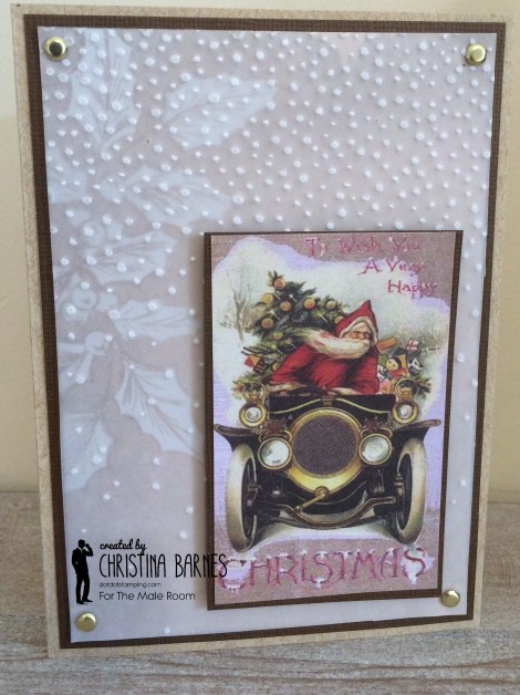 The gorgeous vintage picture of Santa in a vintage car is from some retired Kaszazz patterned paper. Such a gorgeous image!!