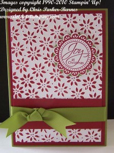 Well, I promise that I will bring you something other than Christmas cards very soon, and I look forward to catching up soon for some stamping time with all of you.