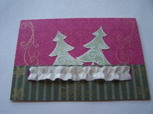 The second card uses a retired DSP which I am trying to use up 🙂 and thought I would get a start on some Christmas cards. I have used the Season of Joy Stamp Set for this one.