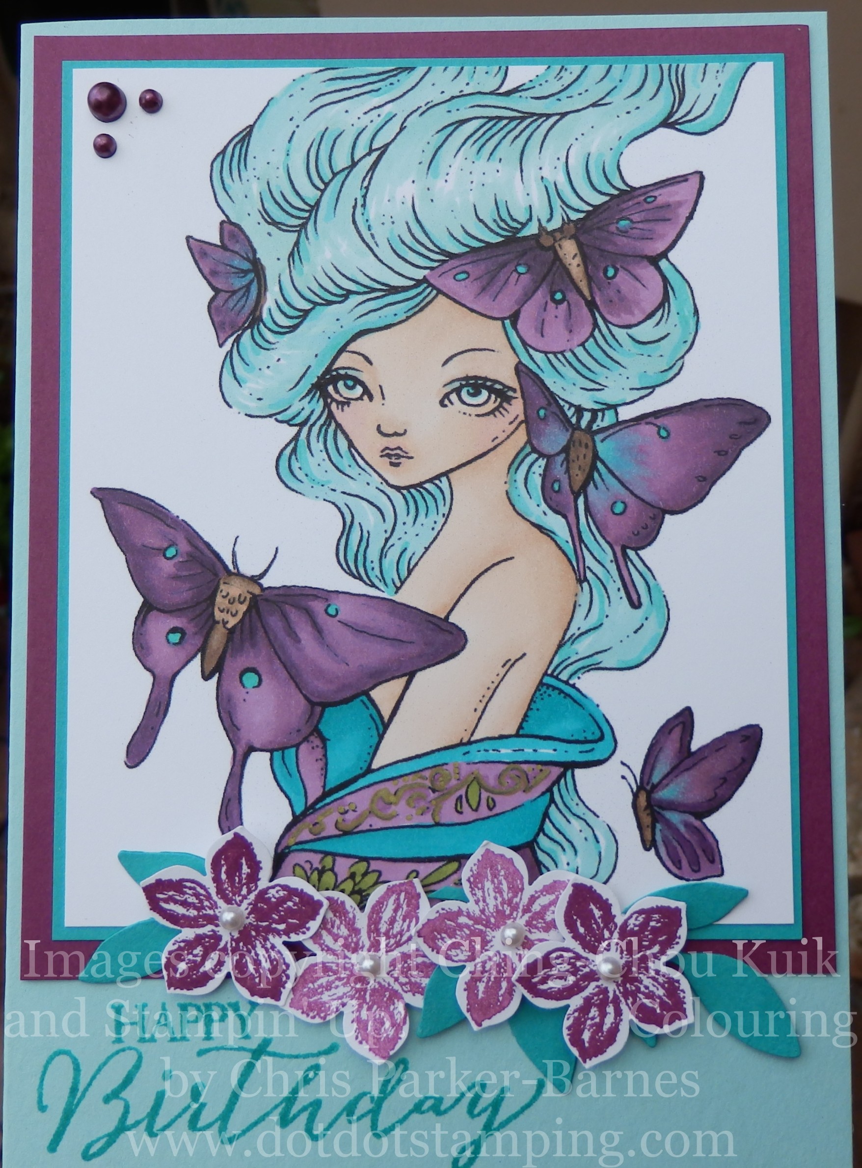 Then I did some colouring with Blendabilities, and decided to make the coloured image into another card with lots of butterflies 🙂