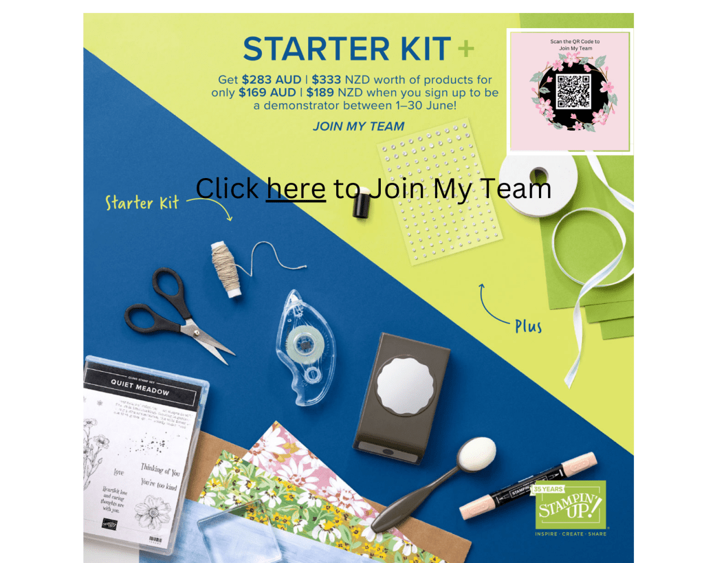 For the month of August, you can get 30% off Stampin’ Up! kits, they are so much fun, great if you are time poor, a novice cardmaker or if you just want to create without having to cut and prepare the pieces. Click here to go to my online store, or scan the QR Code on the image below with your device.