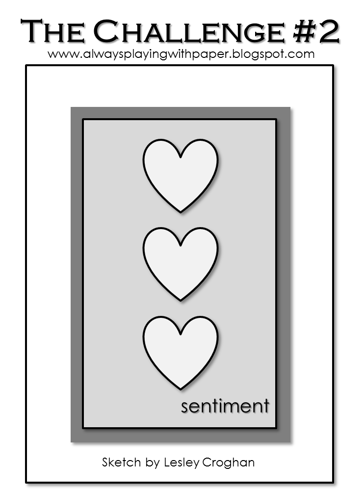 They just happen to be my favourite colours, so I have combined this week’s Stampin’ Up! Only Challenge of making a project featuring pinks and purples, with a new challenge that I have found on the blog fellow stamper Lesley Croghan at Always Playing with Paper. Lesley’s Challenge #2 is a sketch, (and I do so enjoy a sketch challenge:) ):