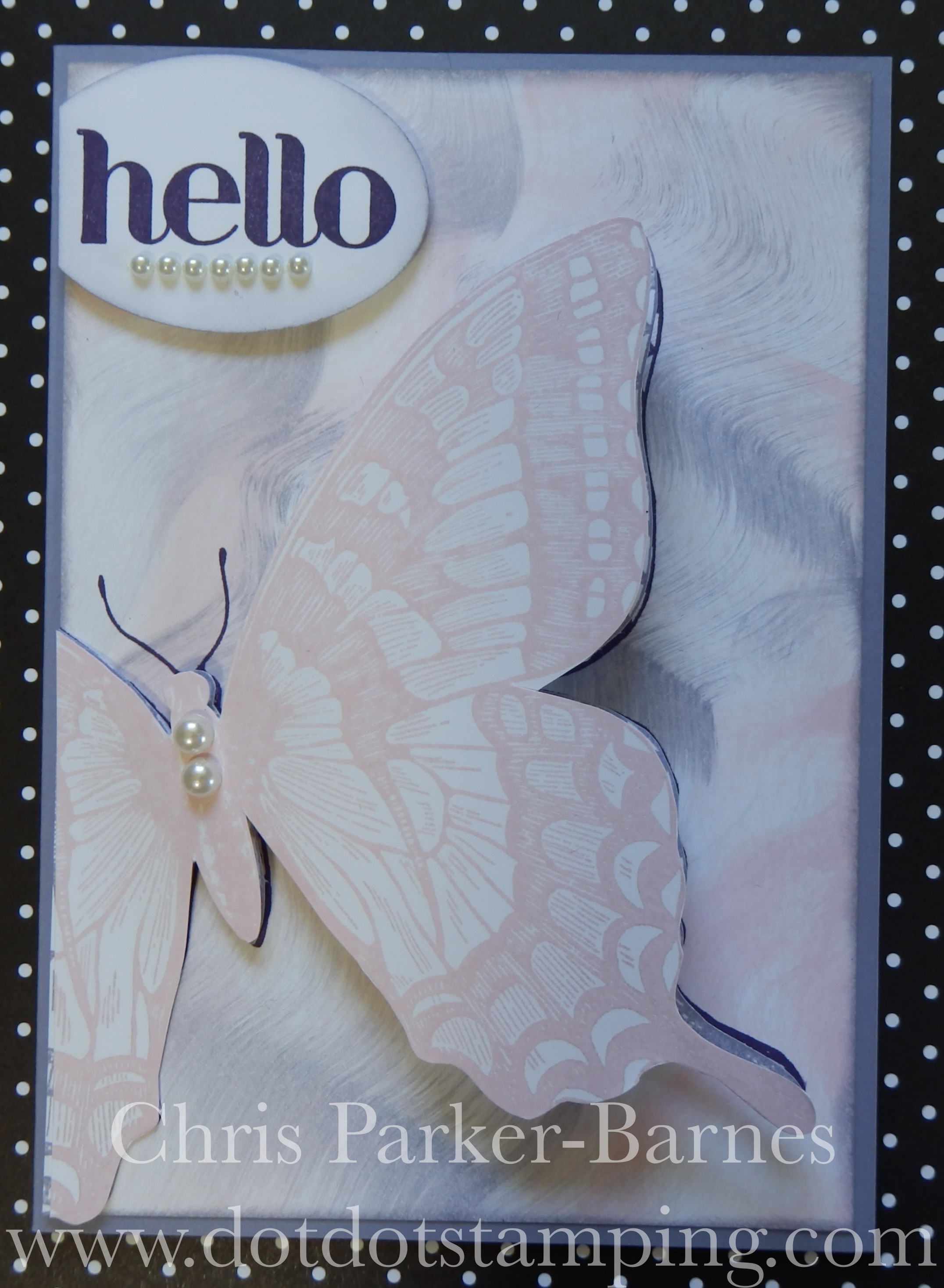 I am using up bits and pieces that I have, and the butterfly embossed background is one that was lying around waiting to be used.