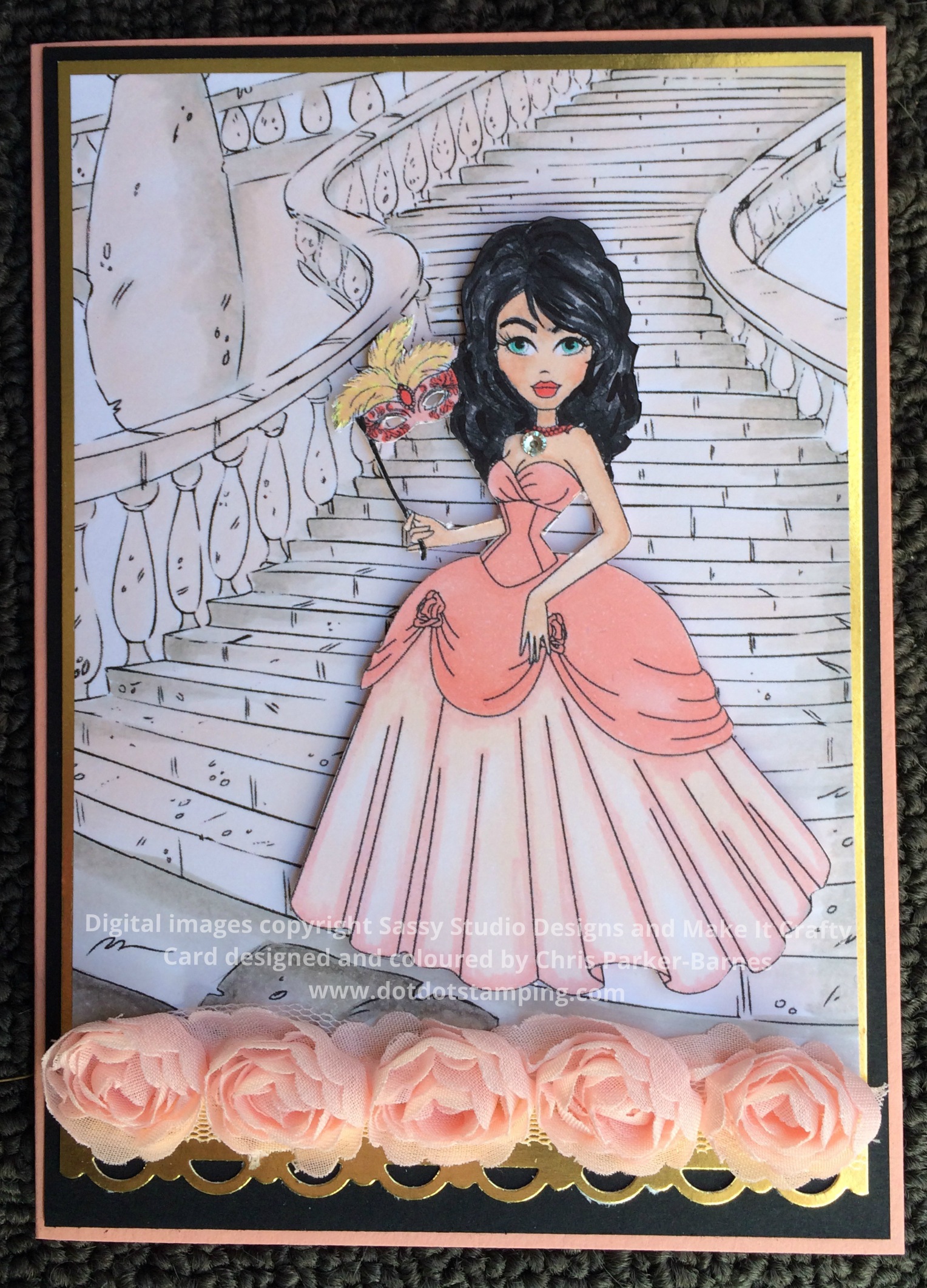 I have used a gorgeous Digi from That Craft Place for my card, called Spring Song. She has been coloured with Copic Markers, and mounted on various papers from my large stash! The ribbon and flower brad are retired Stampin’ Up! goodies, and the paper flowers again from my stash.