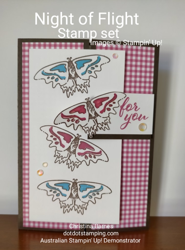 This week’s featured colour is the gorgeous Berry Burst, and I have had a lot of fun this week, combining Berry Burst with the Host stamp set Night of Flight, to create a number of projects. I shared some of those in my previous post, but here are some more, these two were some of the projects we made at a face to face Card class that I ran this morning.