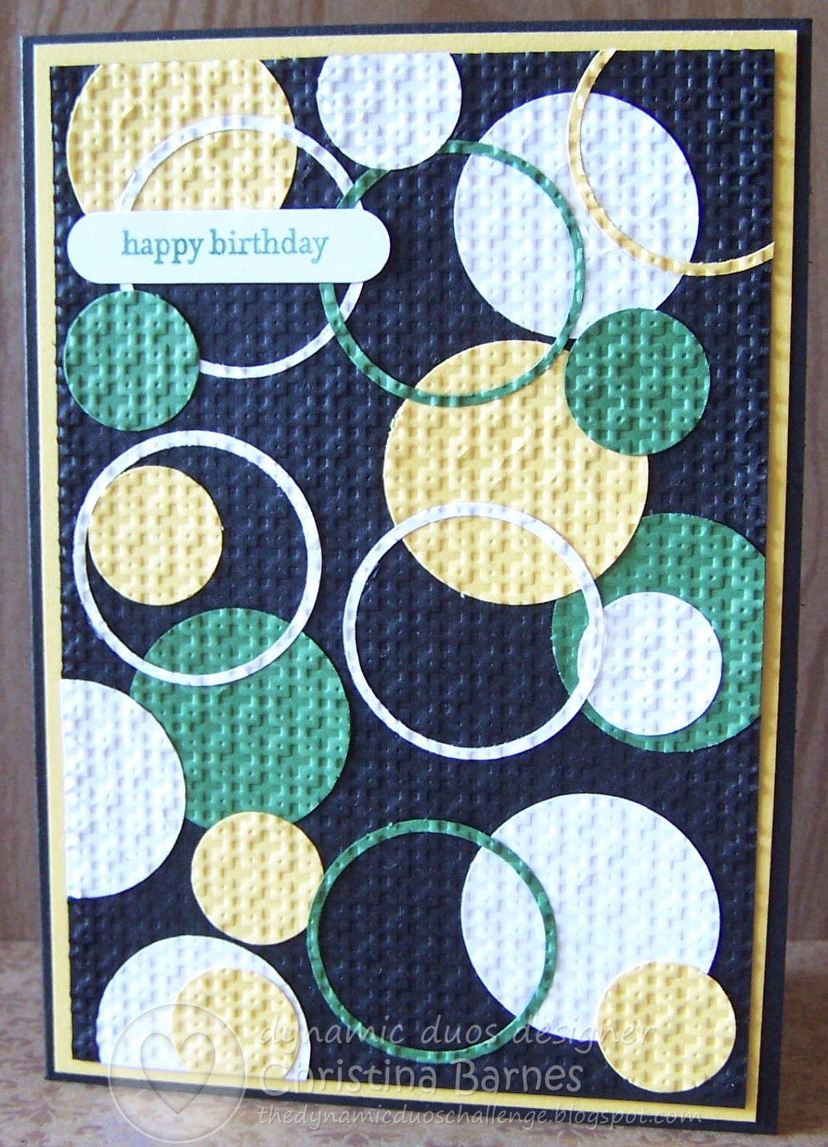 Sadly, this is my last challenge with Dynamic Duos Design Team, it has been a fantastic six months and I have thoroughly enjoyed the time I have spent working with this amazing group of ladies. They are all so incredibly talented, creative and inspirational. I am sure I will be playing along with the next lot of colour challenges and the new Design Team, so keep an eye out for the announcement of who will be taking over for the next round.