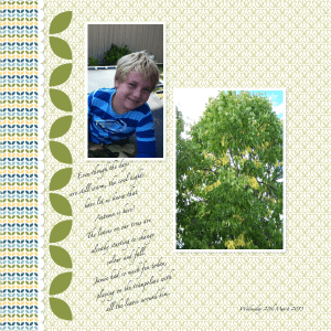 This is a photo of my son sailing his boat on the lake near to where we live, and that sky is a beautiful Azure Afternoon colour. This is the photo that will eventually go on the page, once I get the photo developed.