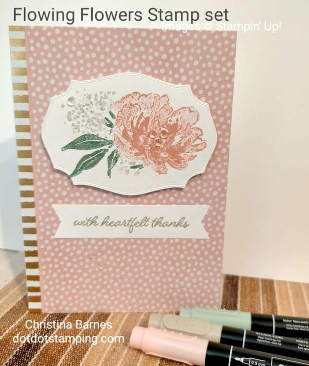 I’ve gone with a very pretty, feminine card today, featuring the new Flowing Flowers stamp set on page 36 of the new January to June 2022 Mini Catalogue, and have paired this with the new Abstract Beauty Designer Series Paper on page 49.