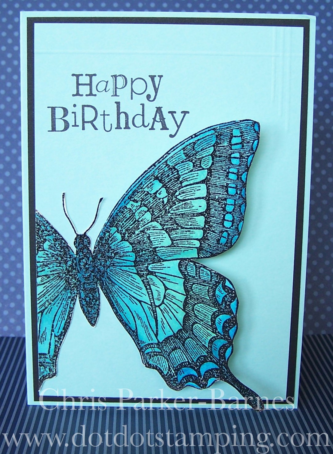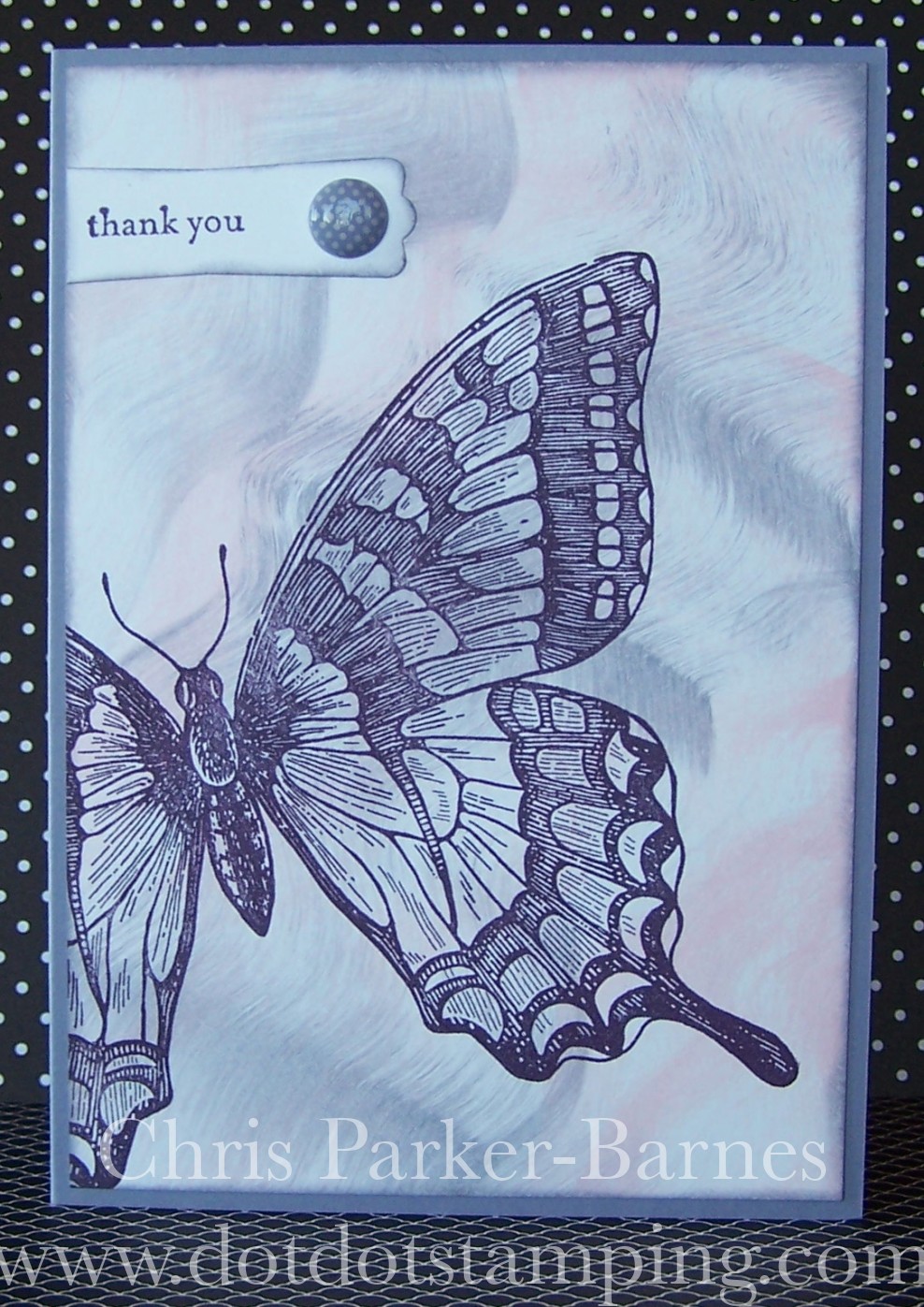 Then on the back, behind the butterfly image, I have coloured using inks and a blender pen, in the two colours, blending them together.